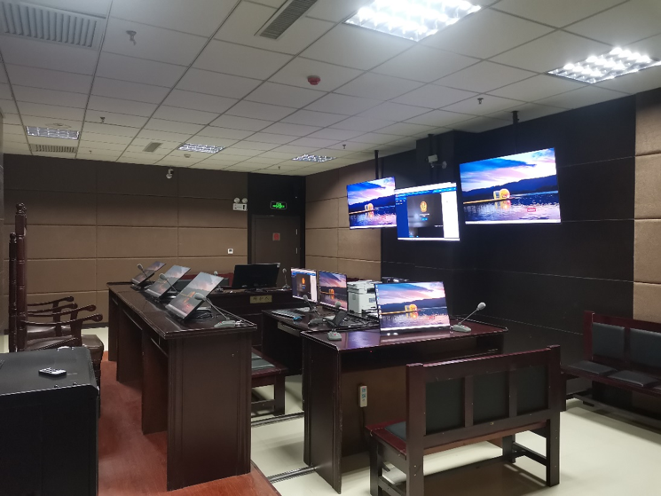 调兵山人民法院,第二、三、六、七法庭,共四个法庭进行融合法庭改造。此次法庭改造主要包括,法庭端视频采集设备、音频采集设备、扩声系统、智能应用交互终端、后端平台建设等,用于庭审音视频的采集、显示以及庭上当事人、法官和书记员应用,互联网当事人应用,融合互联网开庭、本地开庭和远程开庭,可以实现音视频融合赋能、视频行为分析、语音识别等能力对接。